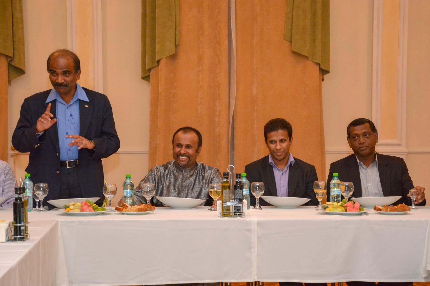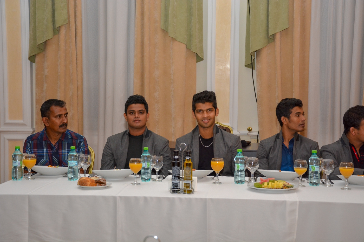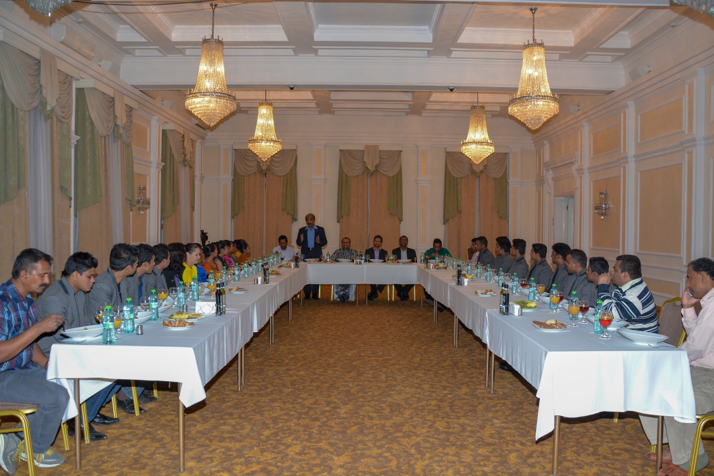 After successfully completing the “Mega Tourism Caravan-7” road Show in Belarus, Ukraine and Moldova, His Excellency Udayanga Weeratunga hosted the participants for a dinner at Hotel Cordon, in which there was also a certificate presentation as a token of appreciation to all the participants. H.E the Ambassador appreciated the efforts of all the participants including the dancers and other exhibitors representating various authorities assisted to make the Roadshow a success. Maj.Gen Crishantha De Silva, Deputy Chief of Mission, Mr. Samantha Pathirana HOC Embassy, Group Captain Ravindra Liyanagamage -Defence Attache, Mr. Viranga Bandara, Junior Manager of Sri Lanka Tourism Promotion Bureau, Miss Anna Korolkova -General Director SriLankan Airline Moscow office and Mr. Chandana Wickramasinghe also spoke in the event.