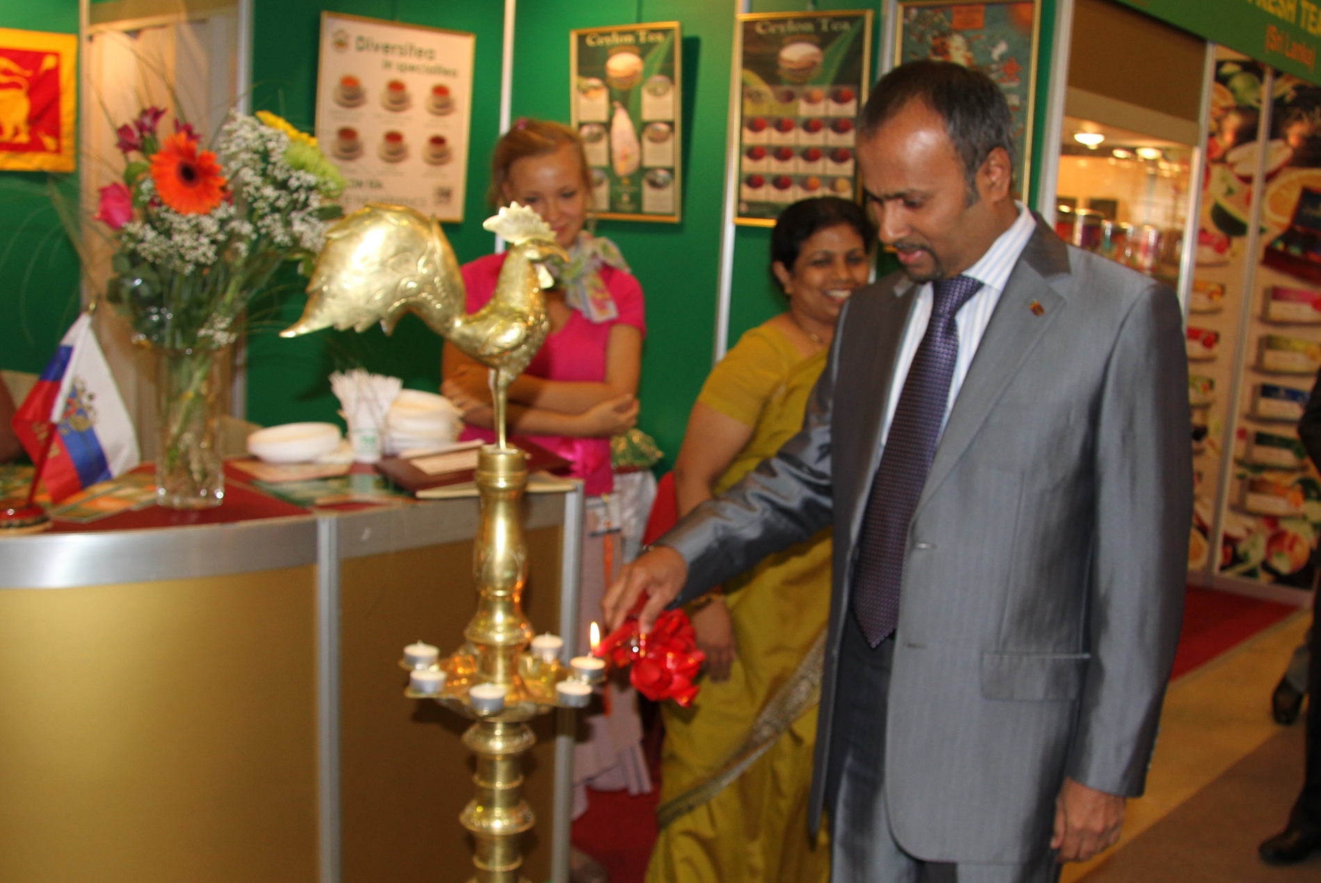 В своей приветственной речи к участникам он сказал, что рад видеть много новых лиц среди представленных на выставке чайных компаний. «После кризисного падения чайного производства на Шри ланке в прошлом 2009 году, этот 2010 год бьет все рекорды роста увеличения объемов производства и продаж чая», — отметил г-н Виратунга. Россия как всегда занимает первое место среди стран-потребителей Цейлонского чая в мире. Цейлонский чай составляет 35% всего чайного Рынка России. Г-н Посол так же заявил, что в следующем году планируется выделение рекламного бюджета на продвижение Цейлонского чая, что, безусловно, будет способствовать еще большей популяризации этого напитка. Г-н Посол пожелал всем участникам удачи и хороших, надежных партнеров в бизнесе.